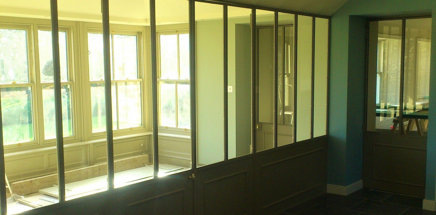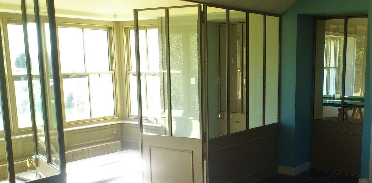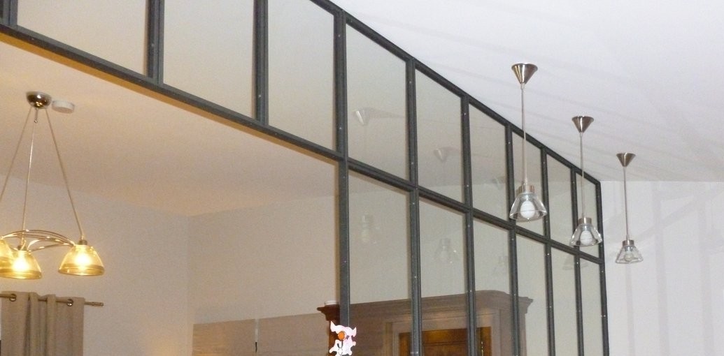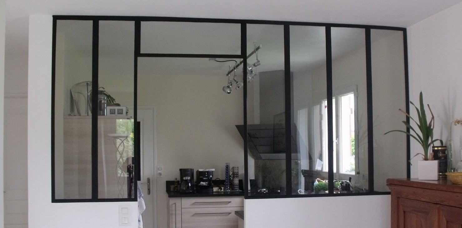 Cloisons et porte métalliques vitrées de la cuisine Escalier sur mezzanine